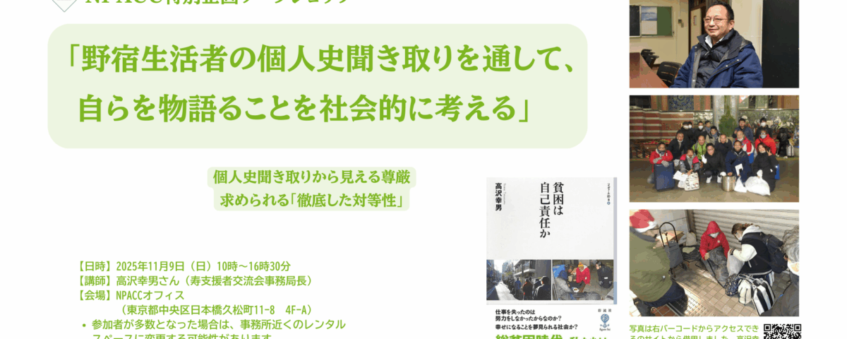 これまでNPACCでは、ご縁をもらい、高沢さんのお話から学ぶ機会を小さな形で作ってきていました。