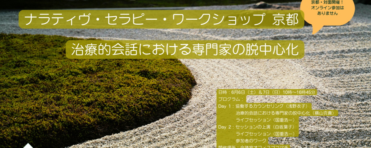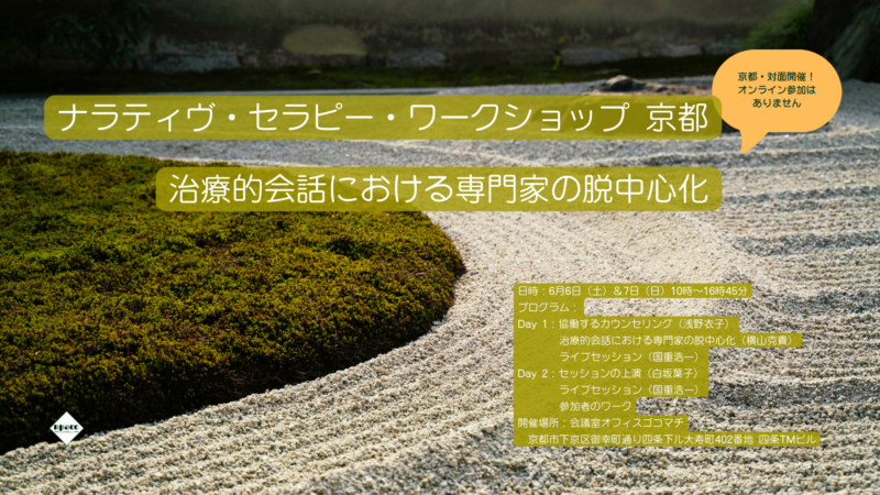 - 関西(京都)で、対面で開催するナラティヴ・セラピーのワークショップです。